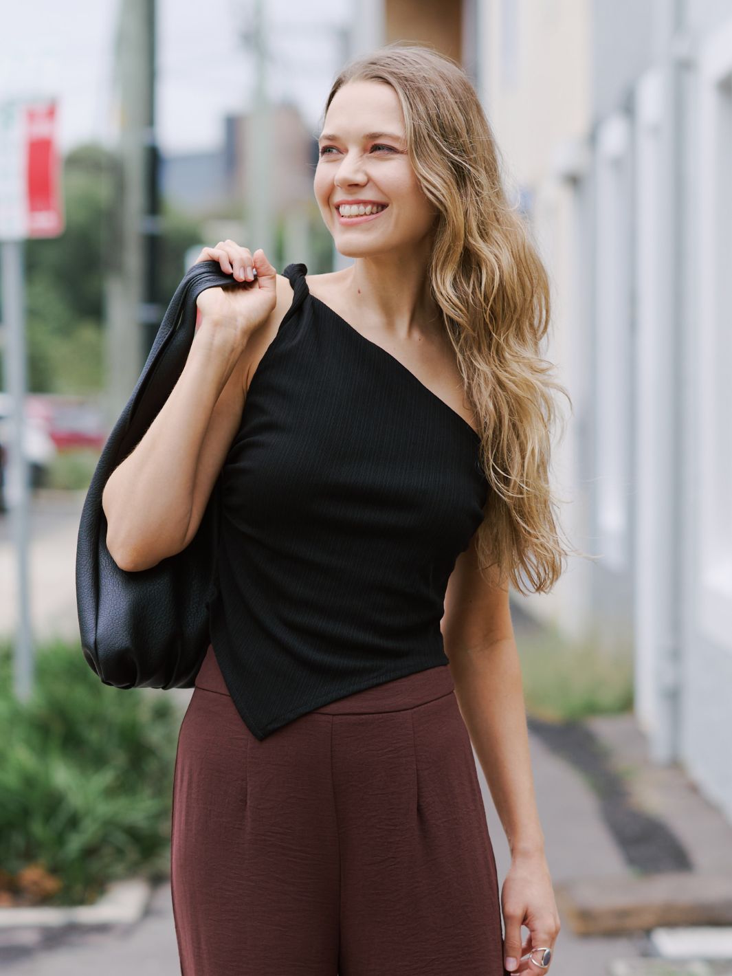 Introducing the WINNIE ANGLE TOP – the perfect blend of style and comfort. Made with a soft ribbed texture and featuring a unique one shoulder cut and angular hem, this top will make you stand out from the crowd.